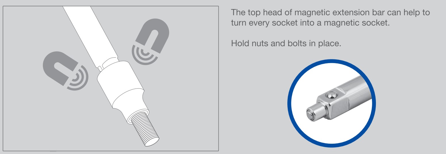 - Tien-i 独自の設計による、ナットとボルトを保持するためのマグネット付き先端。
