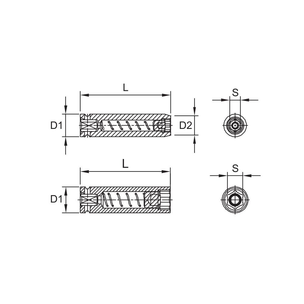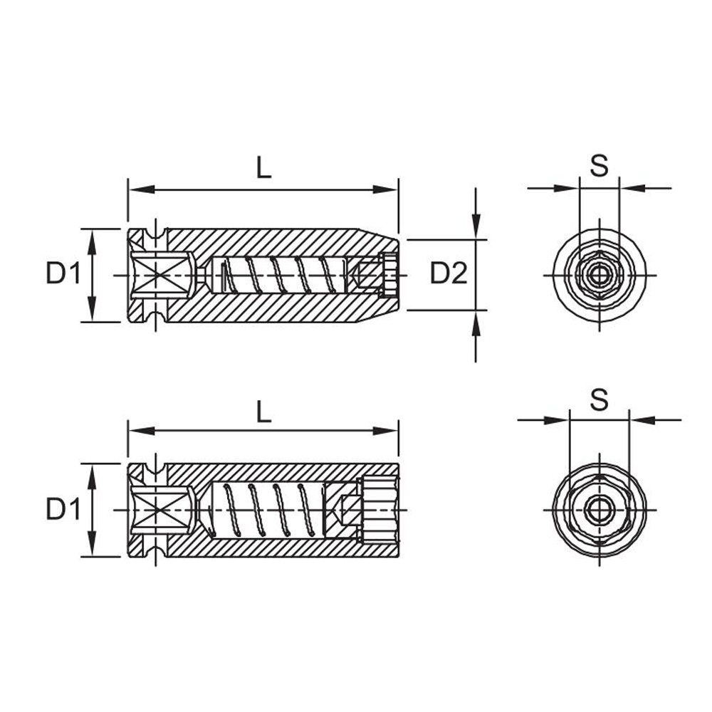 内部シャフトがベース深くまで伸びており、ファスナーとの確実な噛み合いを実現します。