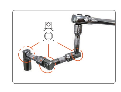 ・狭くて工具が届きにくい場所でのボルト作業に最適。