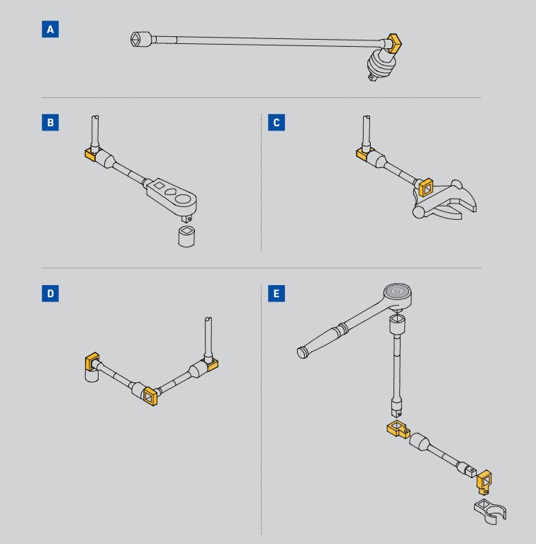 ・エクステンションコネクターは、エクステンションバーやブレーカーバー、ラチェット、クローフットレンチの用途をさらに拡張。