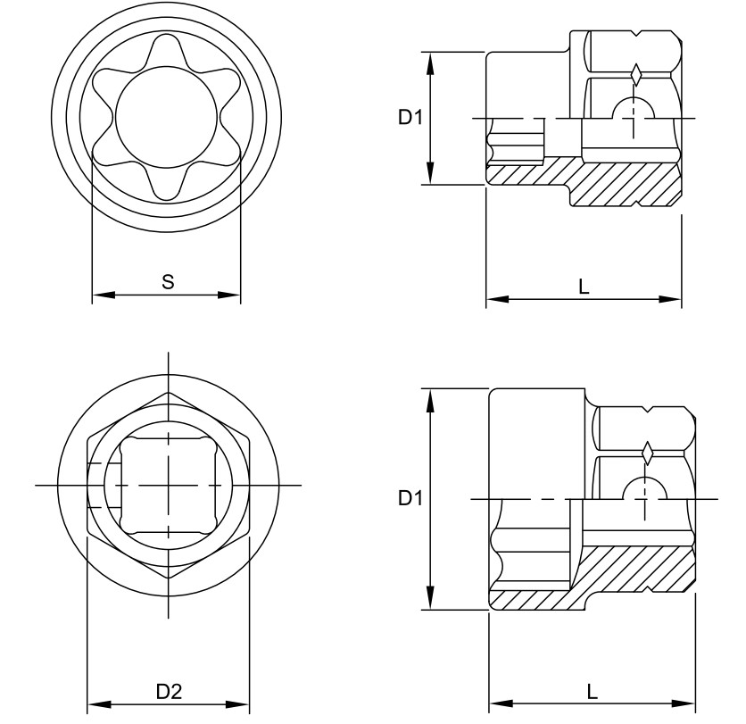外部スター型インパクトソケット(DIN 規格、ユーロタイプ)、E-Starインパクトソケット