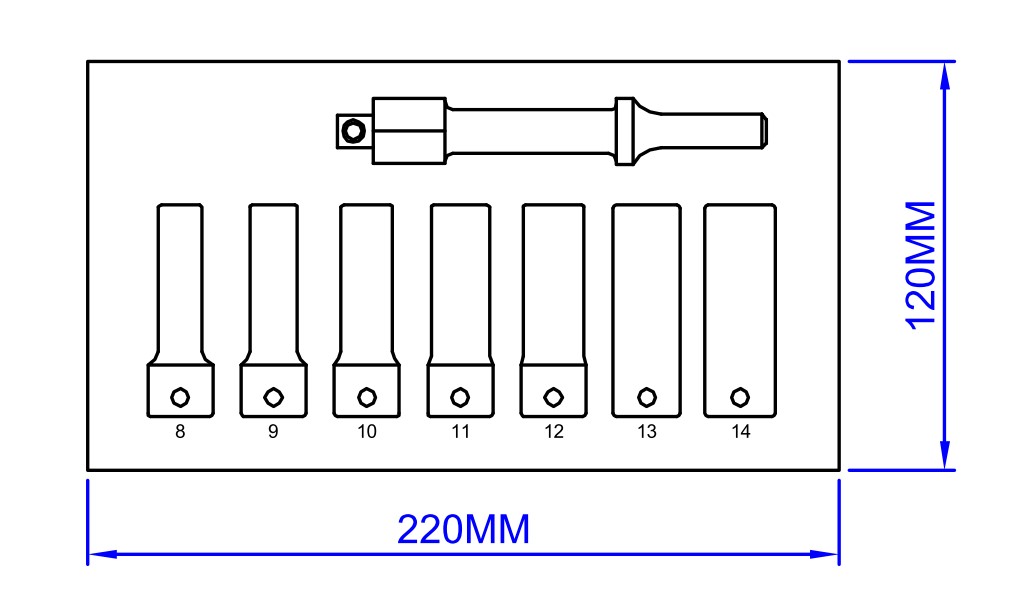 • 3/8インチ ドライブ 6PT ローインターナルエッジ ディープインパクトソケット 8, 9, 10, 11, 12, 13, 14 mm
