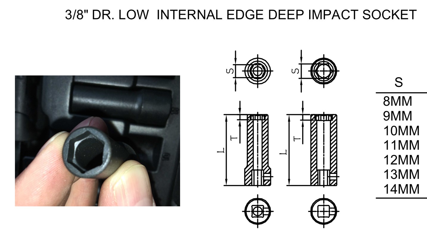 3/8"DR. 6PT Low Internal Edge Deep Impact Socket